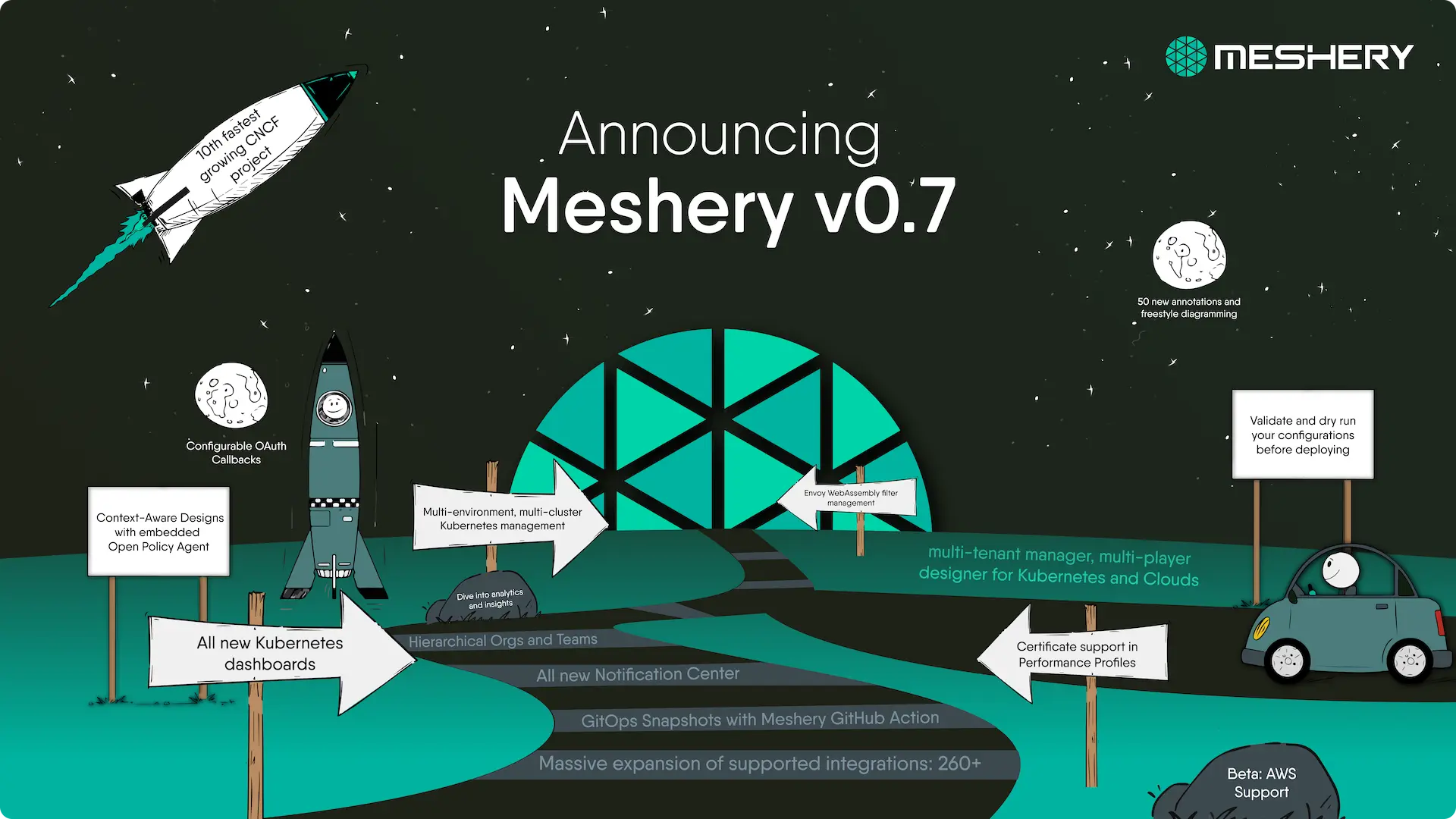 v0.7.0 is the latest and most significant release of Meshery, the CNCF’s cloud native manager. Included in this release is GitOps-enablement, a complete GraphQL API (in addition to the REST API), completely new CLI commands, a number of new resources with an internal capabilities registry, 200+ new integrations, and much more is now generally available.